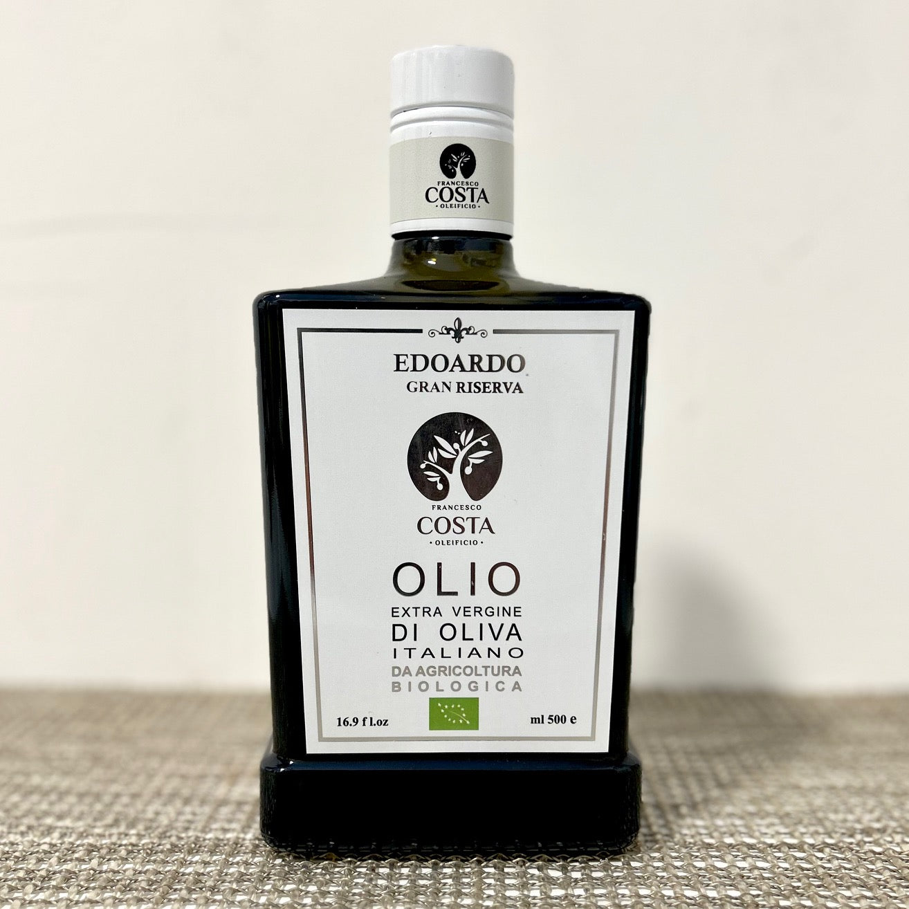 その名を冠するのが、シチリア島ブロンテの生産者〈フランチェスコ・コスタ〉によるエキストラ・バージンオリーブオイル、「エドアルド・グラン・リゼルヴァ・ビオ」です。